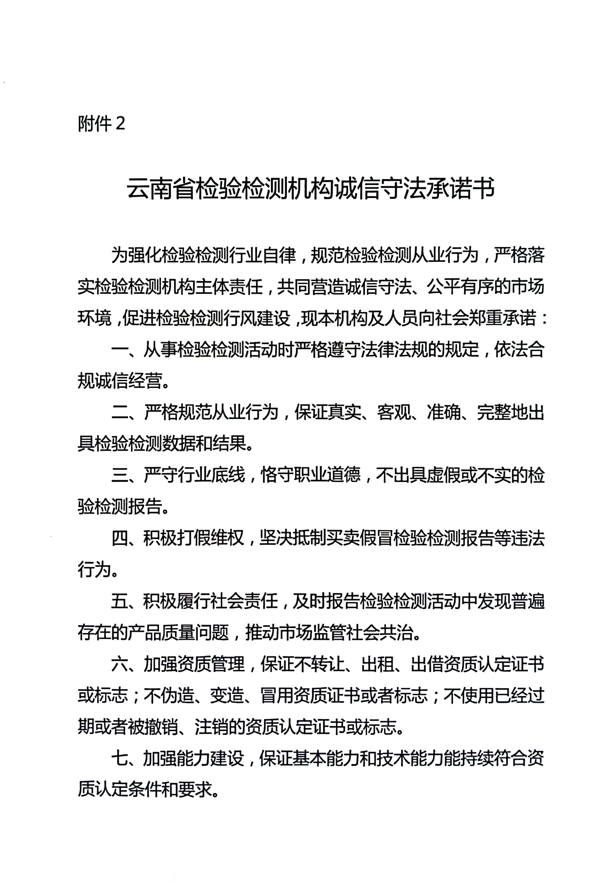 云南地礦珠寶檢測中心有限公司誠信守法承諾書(shū)